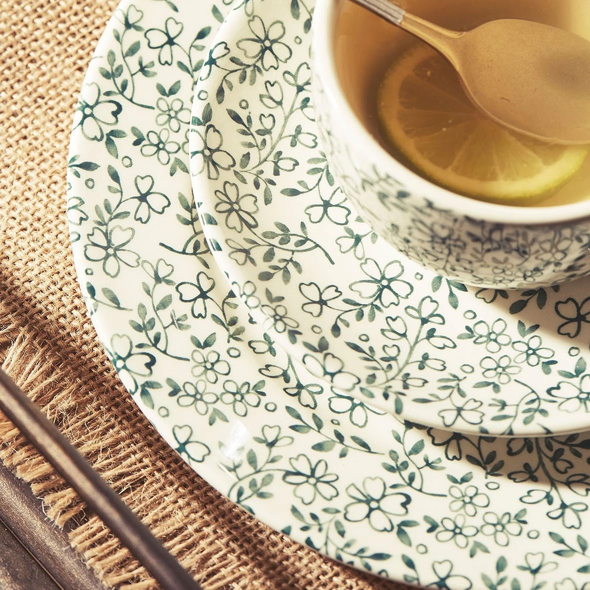 Venez découvrir notre Assiette plate p’tites fleurs vert d26.5cm faience de la marque Comptoir de Famille à découvrir sur Fabrique de Styles.